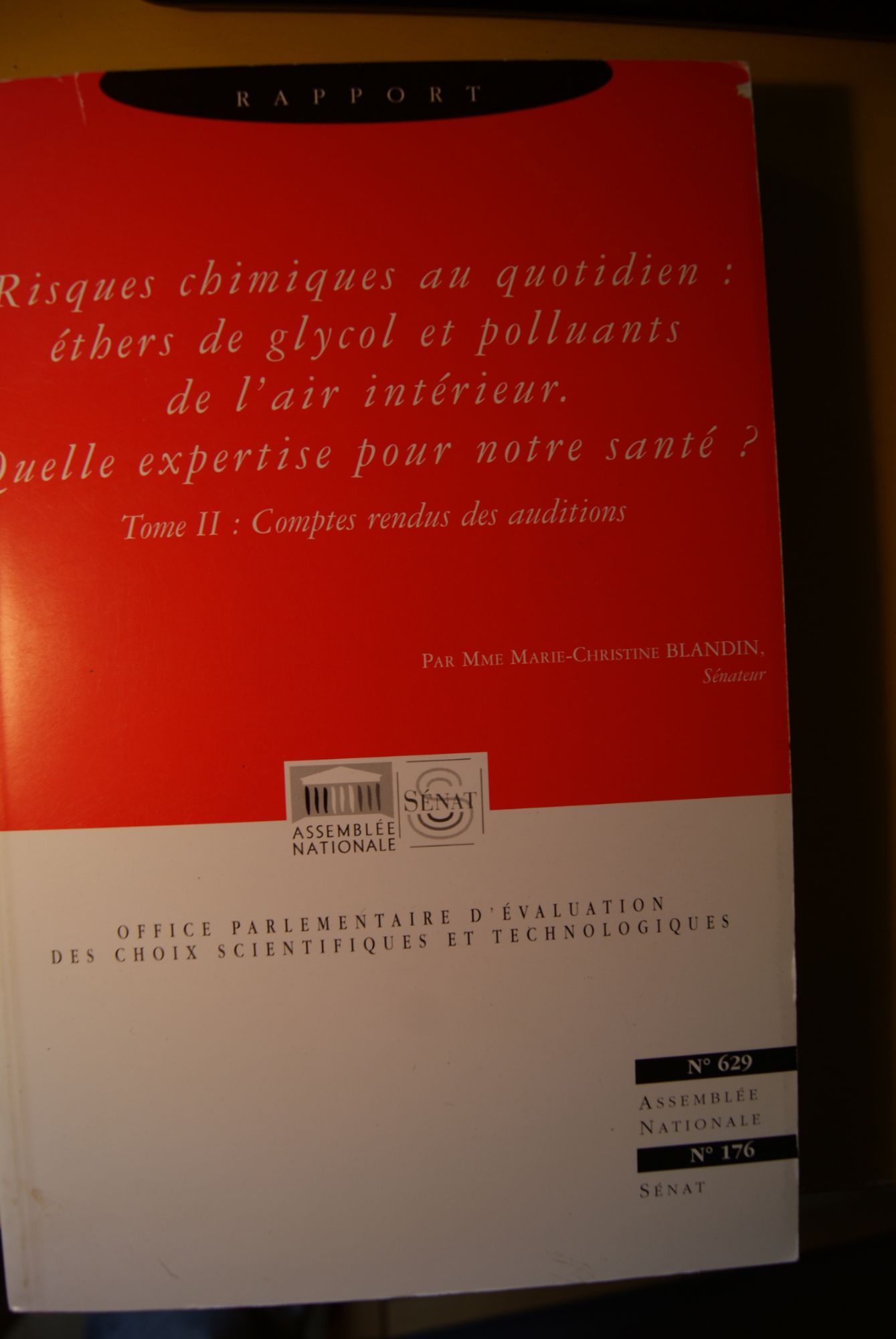 Rapport sur Les risques chimiques au quotidien: Éther de glycol et polluants de l'air intérieur.(2 tomes) N°629 Asseblée Nationale N°176 Sén