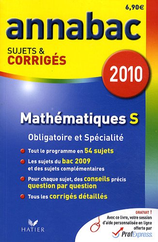 Mathématiques S Enseignement obligatoire et de spécialité : Sujets et corrigés 2010