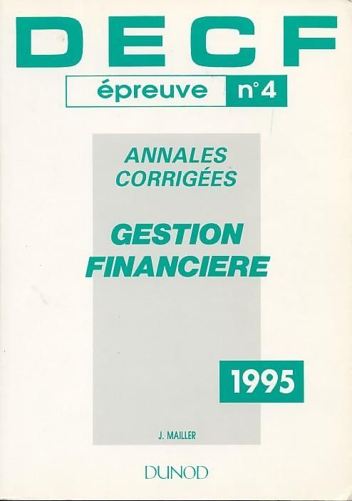 DECF, annales corrigées, 1984 à 1994 inclus Tome 4 : Gestion financière